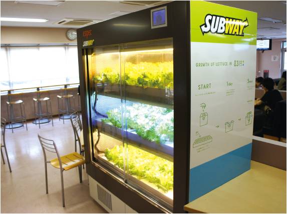 ↑サブウェイ野菜ラボ大阪府立大学店の店内に設置された小型植物工場