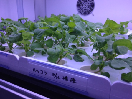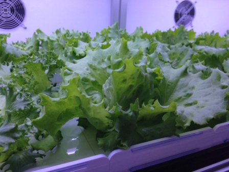 ↑ユニット内で生長するリーフレタス。菌数は市販の洗浄された野菜の100分の1以下。
